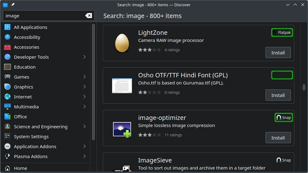Use snap and flatpak to browse Snap and Flatpak packages: